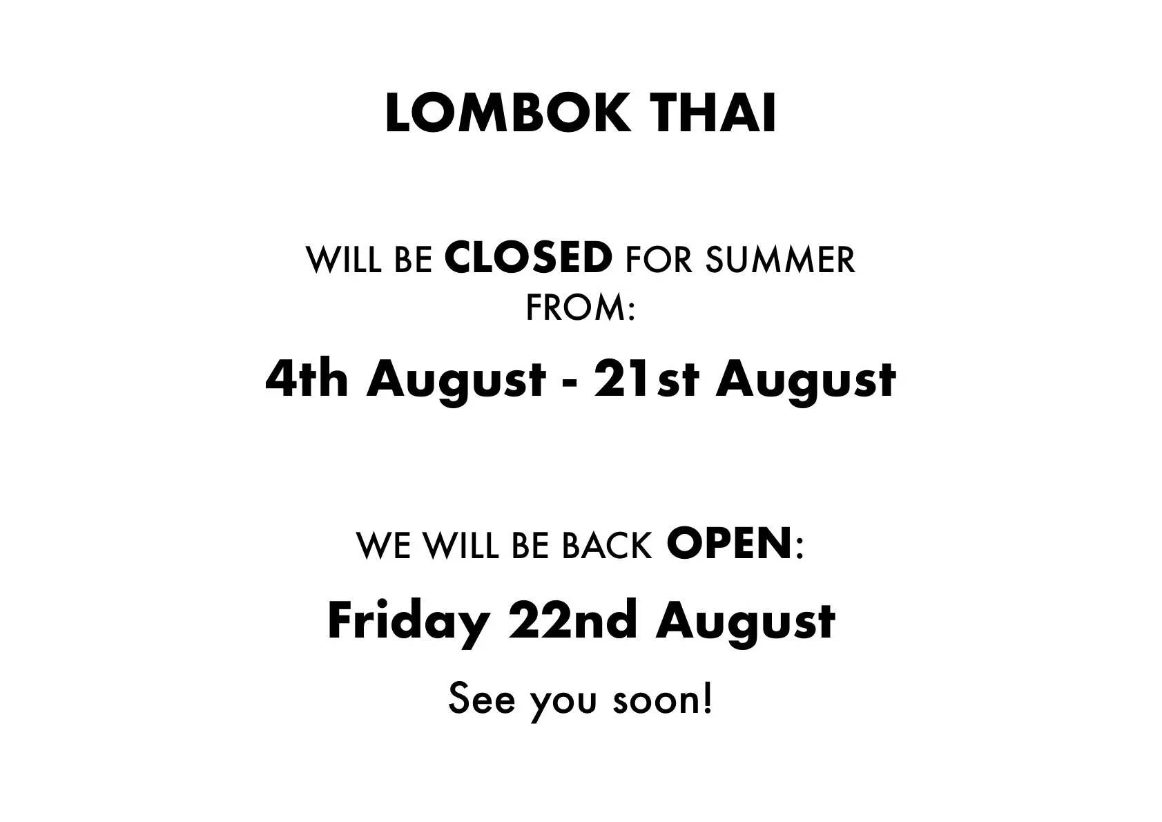 OPENING TIMES